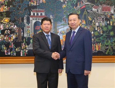 | Le ministre vietnamien de la Police, Tô Lâm (droite), et le secrétaire général du Conseil national de sécurité de la Thaïlande, Wanlop Rugsanaoh. |