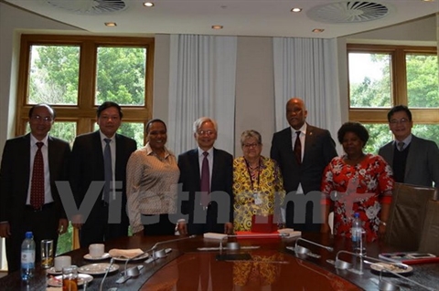 Au Cap, la délégation vietnamienne a travaillé avec Dunjwa, chef du Comité de la santé de l’Assemblée nationale de l’Afrique du Sud, Loliwe, membre du Comité de travail de l'AN sud-africaine et plusieurs membres du Comité central du Parti communiste sud-africain. Ta Ngoc Tân a informé ses hôtes des réalisations obtenues par le Vietnam dans le développement socio-économique, les politiques du pays pour intégrer et élargir les relations internationales et la coopération dans la formation de gestionnaire et la recherche de son Académie.