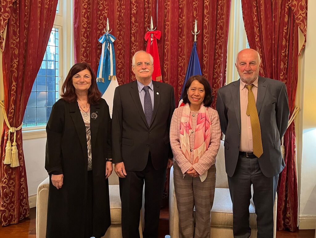 | L'ambassadrice du Vietnam en Argentine, Ngô Minh Nguyêt (2e à droite) et le chef du département des relations internationales du Parti justicialiste (PJ), ancien ministre argentin de la Défense et des Affaires étrangères, Jorge Taiana (2e à gauche). |