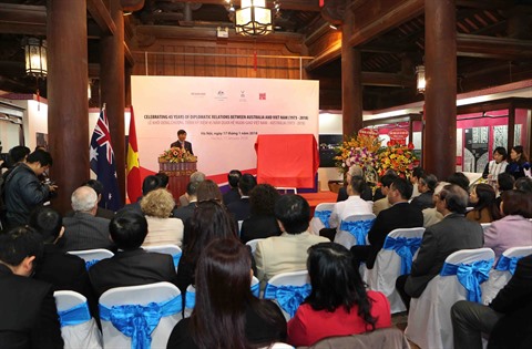 "Le Vietnam est l’un des partenaires les plus importants de l’Australie dans la zone Indo-Pacifique. Nos deux pays ont tissé des liens de partenariat forts durant ces 45 années et ces relations se développent dans divers domaines notamment les échanges politiques, le développement économique et la coopération dans la défense et l’innovation". C’est avec ces propos que Craig Chittick, ambassadeur australien au Vietnam, s’est exprimé lors de la cérémonie de lancement du Programme de célébration des 45 ans d’établissement des relations diplomatiques bilatérales, tenue le 17 janvier au Temple de la Littérature (Van Miêu-Quôc Tu Giam) à Hanoï.