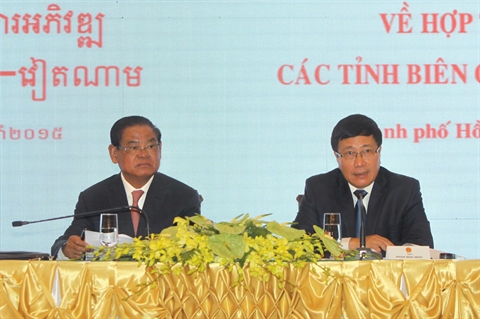 | Le vice-Premier ministre et ministre des Affaires étrangères Pham Binh Minh (droite) et de son homologue cambodgien Samdech Krolahom Sar Kheng, le 28 octobre à Hô Chi Minh-Ville. |