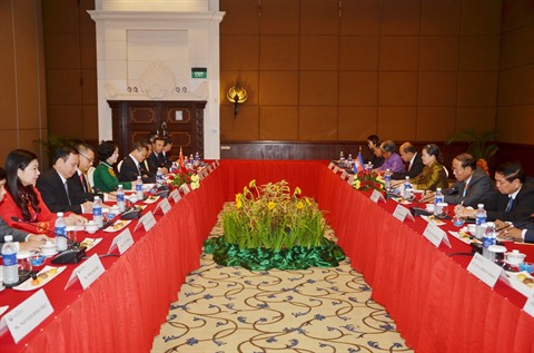 Le 26 octobre, la délégation vietnamienne a été reçue à Phnom Penh par Samdec Heng Samrin, président d’honneur du Parti du peuple cambodgien (PPC) et président de l’Assemblée nationale (AN) cambodgienne.