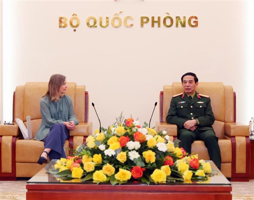 | Le ministre vietnamien de la Défense, Phan Van Giang, et la vice-ministre canadienne de la Défense, Stefanie Beck, le 20 février à Hanoï. |