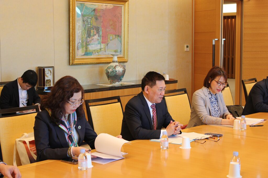 | Hô Duc Phoc (centre) lors d'une réunion avec Masahiko Kato, PDG de la banque Mizuho. |