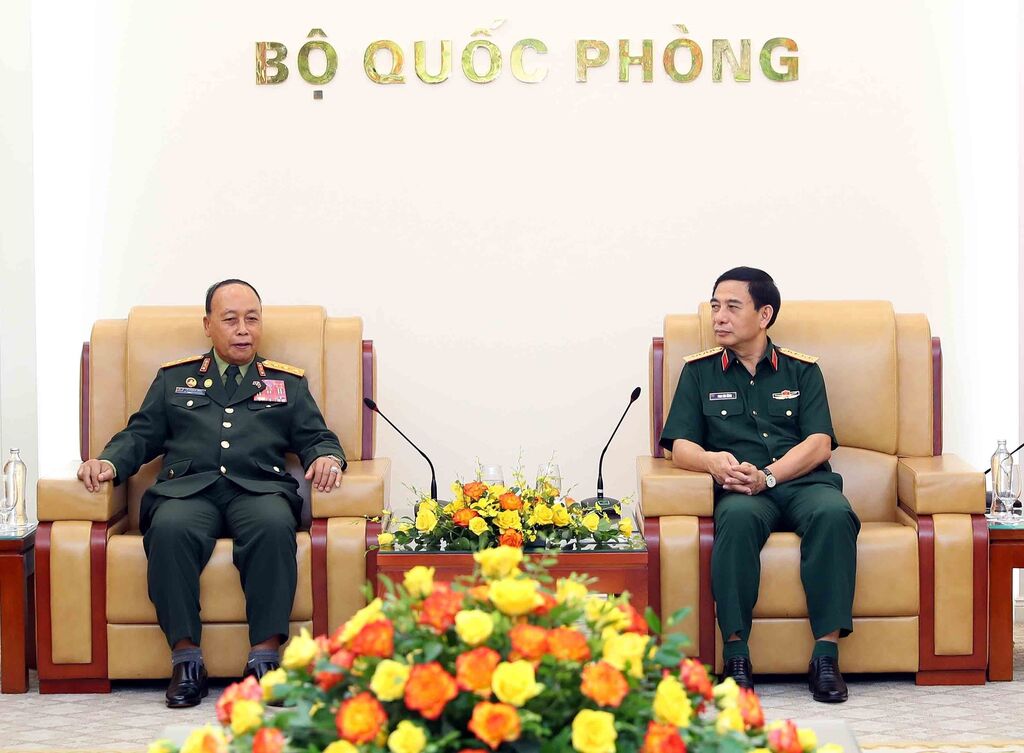 | Le ministre vietnamien de la Défense, Phan Van Giang (droite), a reçu le général de corps d’armée Thongloi Silivong. |