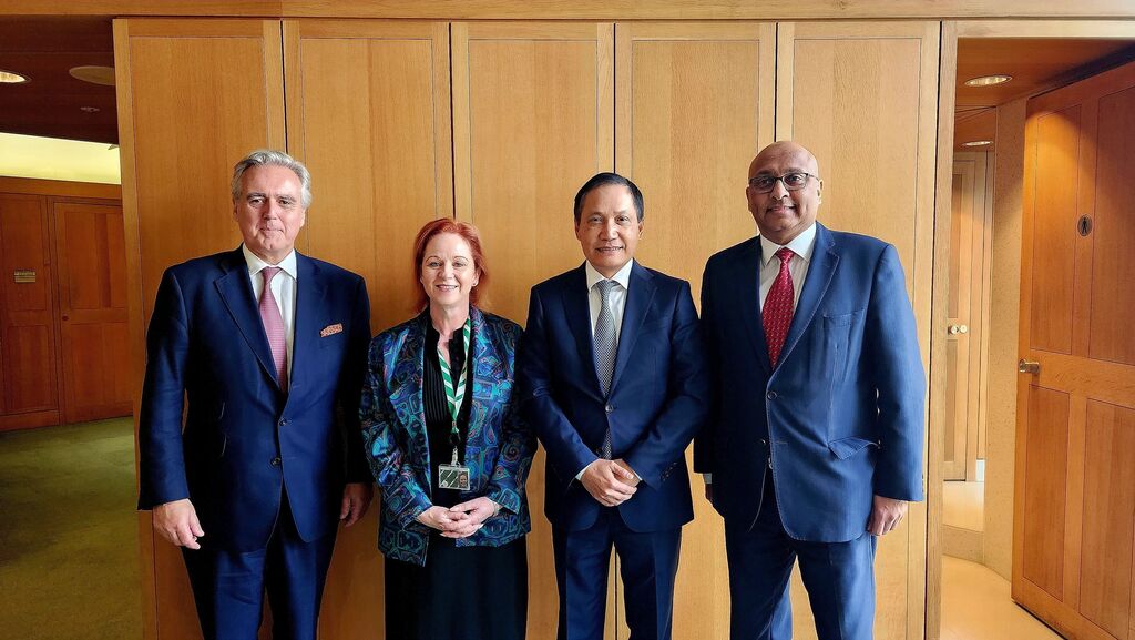 | L'ambassadeur Dô Minh Hùng (2e à droite), la vice-présidente de la Chambre des communes du Royaume-Uni, Judith Cummins, et deux députés britanniques. |