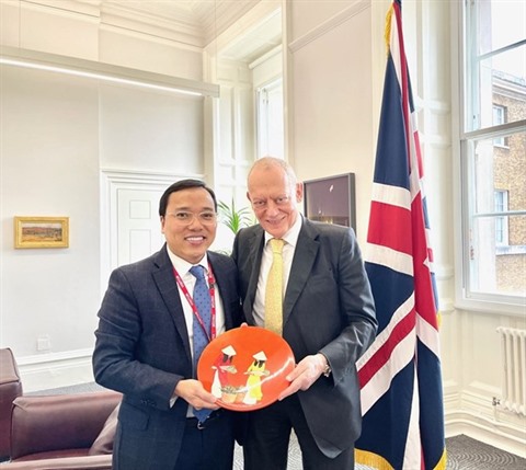 | L’ambassadeur Nguyên Hoàng Long avec le secrétaire d’État au Commerce international Gerry Grimstone. |