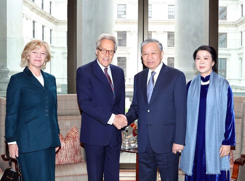 | Le secrétaire général Tô Lâm et son épouse reçoivent le duc de Richmond, Charles Henry Gordon-Lennox et l'épouse de celui-ci. |
