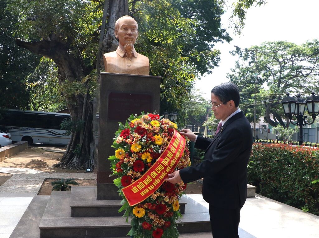 | Le vice-président de l’Assemblée nationale, Nguyên Duc Hai, rend hommage au Président Hô Chi Minh à Colombo. |