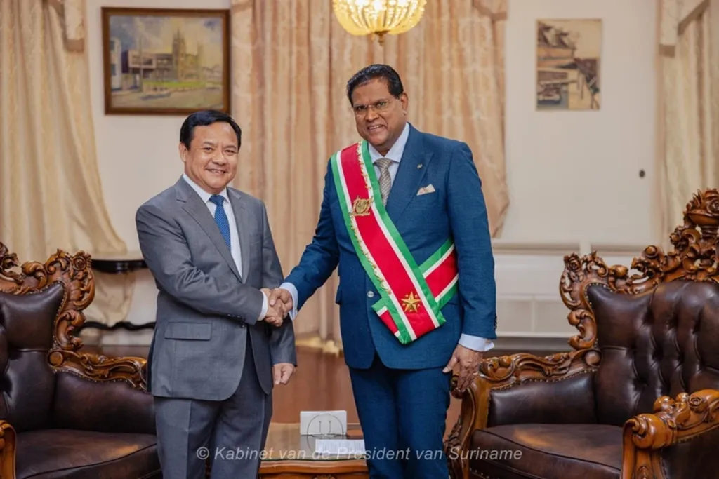 Le diplomate vietnamien a transmis les salutations du président Tô Lâm et du Premier ministre Pham Minh Chinh au président Suriname, Chandrikapersad Santokhi et s'est engagé à contribuer activement au développement des liens d'amitié et de coopération entre les deux pays, en vue de célébrer le 30e anniversaire de l’établissement de relations diplomatiques en 2027.