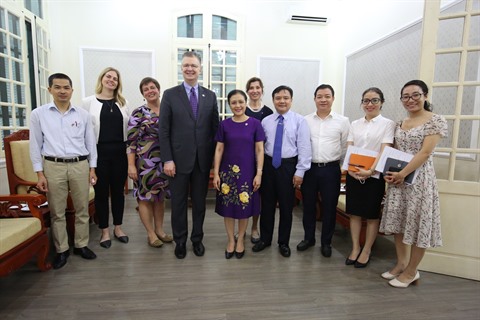 | Rencontre entre les responsables de l'Union des organisations d'amitié du Vietnam et de l'ambassade américaine au Vietnam, à Hanoï le 8 mai. |