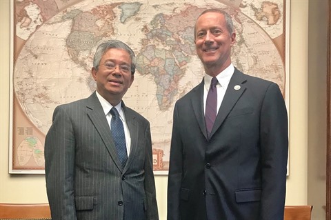 | L'ambassadeur du Vietnam aux États-Unis, Pham Quang Vinh (gauche), et le membre du Congrès américain Mac Thornberry, président de la Commission des forces armées. |