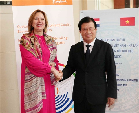 | Le vice-Premier ministre Trinh Dinh Dung et la ministre néerlandaise des Infrastructures et de la Gestion de l'Eau, Cora van Nieuwenhuizen. |