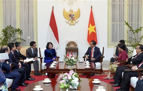 | La vice-présidente vietnamienne Dang Thi Ngoc Thinh a eu une séance de travail avec le président indonésien Joko Widodo, le 20 octobre à Jakarta |