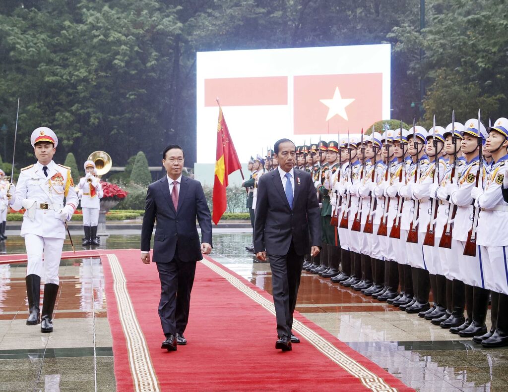 Le chef d’État Vo Van Thuong a présidé vendredi 12 janvier à Hanoï la cérémonie solennelle d'accueil du président indonésien Joko Widodo.