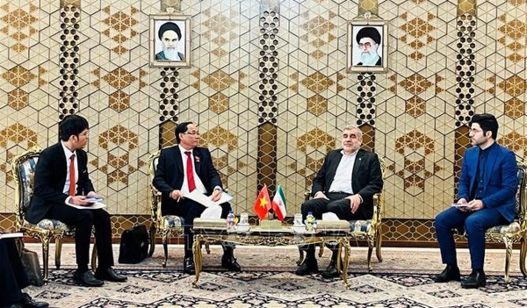| Le vice-président de l'AN vietnamienne Trân Quang Phuong (2e à gauche) s'entretient avec le premier vice-président du Parlement iranien, Ali Nikzad (2e à droite), en 2022. |