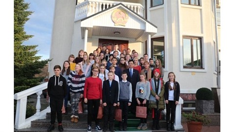 | La délégation de 40 enseignants et élèves de Kremenchuk devant l'ambassade du Vietnam en Ukraine, le |