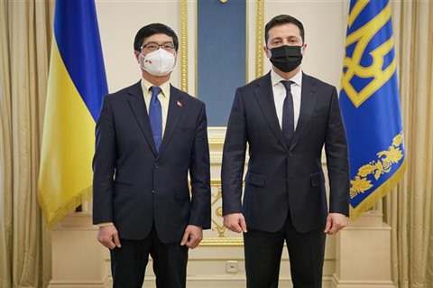 En recevant le diplomate vietnamien venu lui présenter ses lettres de créances, jeudi 4 mars à Kiev, le président ukrainien s’est réjoui du développement heureux des relations d’amitié et de coopération entre l’Ukraine et le Vietnam. Le chef de l’État ukrainien a remercié le Vietnam d’avoir donné à son pays des fournitures médicales pour la lutte contre la pandémie de COVID-19.