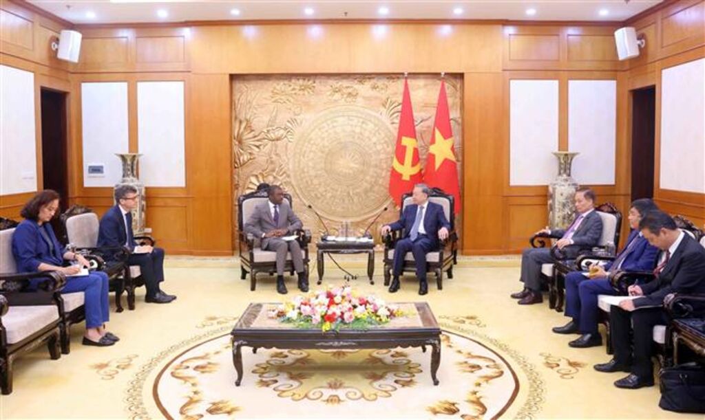 | Le secrétaire général du Parti, Tô Lâm (droite) et le directeur du Centre du patrimoine mondial de l’UNESCO, Lazare Eloundou Assomo, le 20 mai à Hanoï. |