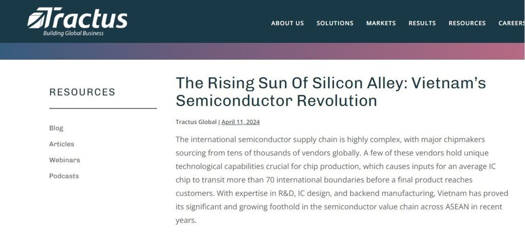 | Selon Tractus, le Vietnam a prouvé sa position importante et croissante dans la chaîne de valeur mondiale des semi-conducteurs au sein de l'ASEAN ces dernières années. |