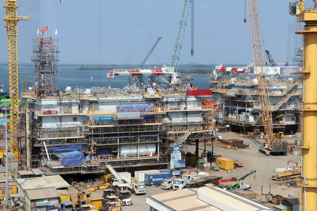 | La station de transformation de l'énergie éolienne offshore est en cours de construction par PTSC à Vung Tàu. |