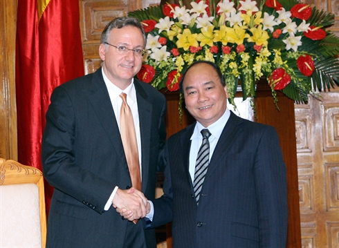 | Le vice-Premier ministre Nguyên Xuân Phuc (à droite) et l'ambassadeur des États-Unis à Singapour, David Adelman, le 22 février à Hanoi. |