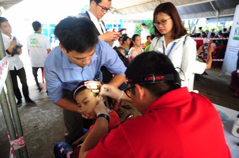 | Consultation médicale pour un enfant malentendant dans le village de Hy Vong à Dà Nang (Centre). |
