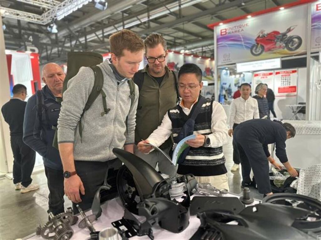| Visiteurs au stand vietnamien au salon du deux-roues EICMA Milan 2025. |