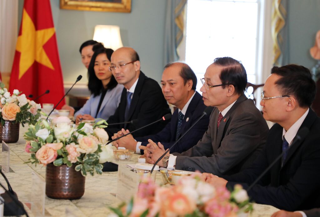 | Vue de la rencontre entre le chef de la Commission des relations extérieures du Comité central du PCV, Lê Hoài Trung, et le secrétaire d’État américain Antony Blinken. |