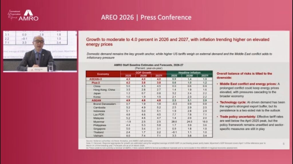 Ce rapport a été présenté lors d’une conférence de presse de l’ASEAN+3 Macroeconomic Research Office (AMRO). Lors de cet événement, organisé le 6 avril, l’économiste en chef d’AMRO, Dong He, a affirmé que le Vietnam avait plutôt bien absorbé le choc tarifaire de l’an dernier, mieux que ne l’avaient anticipé de nombreux analystes. Il a également estimé que le pays devrait rester l’économie à la croissance la plus rapide de la région en 2026.