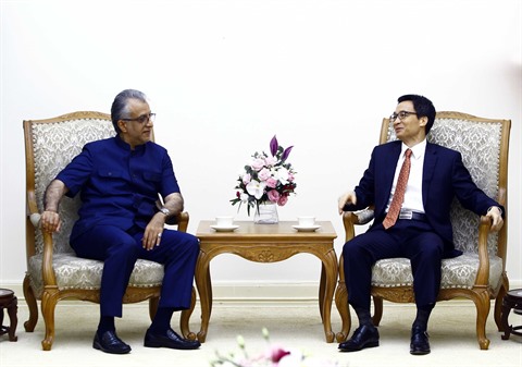 | Le vice-Premier ministre Vu Duc Dam (droite) reçoit Shaikh Salman bin Ebrahim Al Khalifa, président de l'AFC, le 1er novembre à Hanoï. |