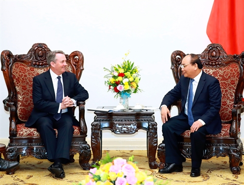 | Le Premier ministre Nguyên Xuân Phuc (droite) a reçu jeudi 23 février à Hanoi le secrétaire d’État au Commerce international du Royaume-Uni, Liam Fox. |