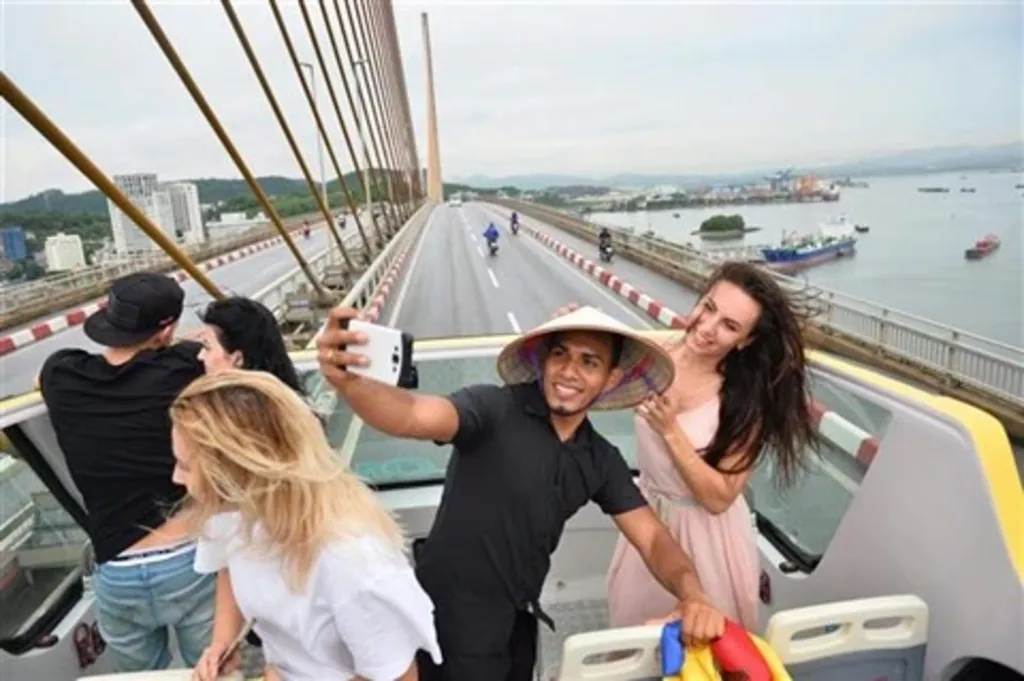 | Des touristes étrangers à Quang Ninh (Nord). |