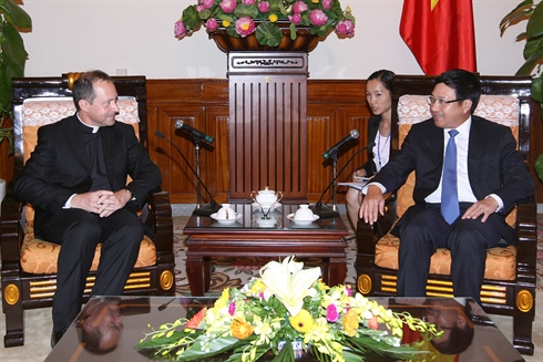 Pham Binh Minh a apprécié le développement des relations entre le Vietnam et le Vatican, ce dont témoignent les échanges entre de hauts dirigeants vietnamiens et le Pape, les résultats des réunions annuelles du Groupe de travail Vietnam-Vatican tout comme les activités de l’envoyé spécial non permanent du Saint-Siège au Vietnam.