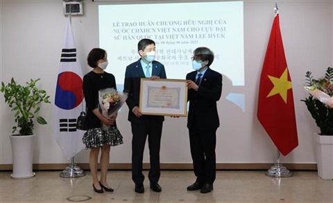 | Cérémonie de la remise de l'Ordre d'amitié à l'ancien ambassadeur de République de Corée au Vietnam, Lee Hyuk, le 8 juin. |