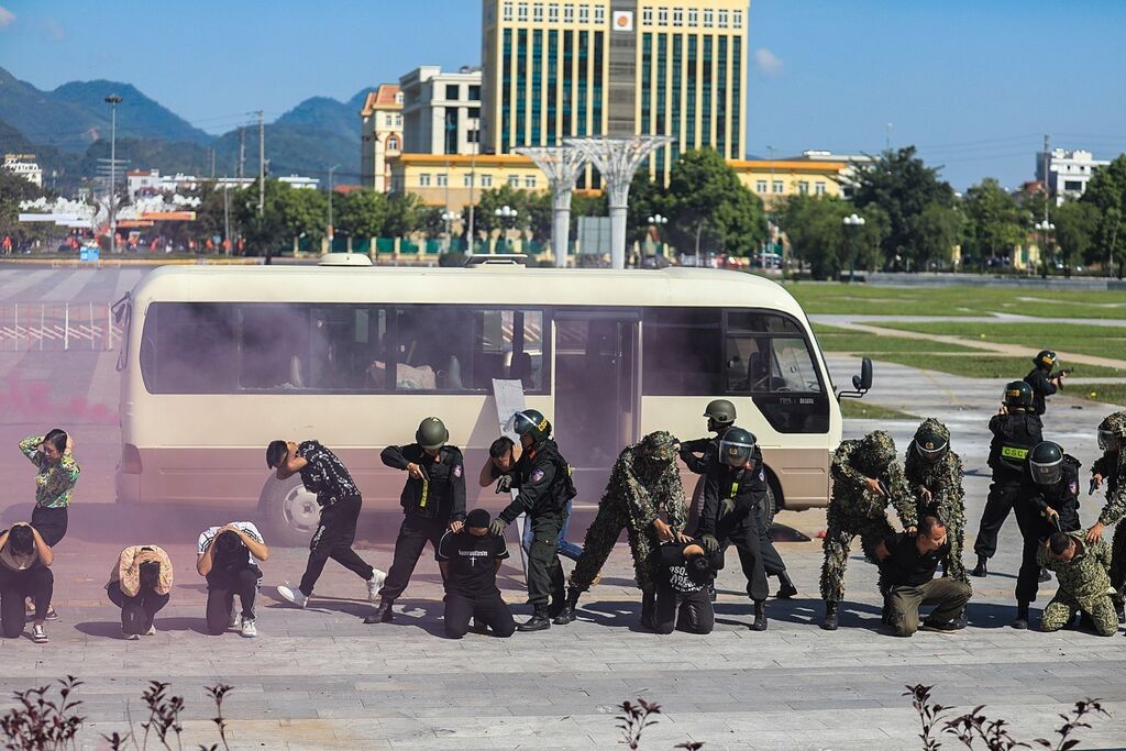 | Exercice de neutralisation des groupes terroristes et de sauvetage d'otages à bord de véhicules terrestres dans la province de Phu Tho. |