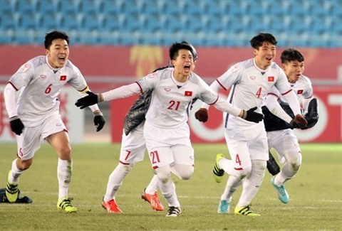 | Les joueurs de l'équipe de football U23 du Vietnam. |