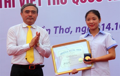 Lors de la 45e édition du concours de composition épistolaire pour les jeunes de l'UPU, Nguyên Thi Thu Trang, une élève de la province septentrionale de Hai Duong (Nord) a emporté le premier prix. Le thème retenu pour l’édition 2016 est «Écris une lettre à toi-même à 45 ans». Il s’agit de la 2e fois que les élèves vietnamiens ont gagné le premier prix de ce type de concours de l’UPU.