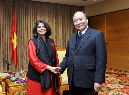 | Le vice-Premier ministre Nguyên Xuân Phuc et la coordonnatrice de l'ONU au Vietnam, Pratibha Mehta. |