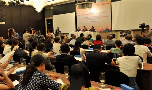 | Conférence de presse internationale sur la campagne nationale de promotion du tourisme "Exciting Vietnam : Vietnam - une destination sûre, amicale et attrayante", le 9 juillet à Hanoi. |