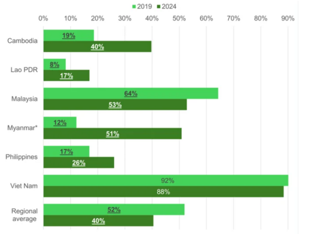 L’analyse des niveaux de compétence met également en évidence la nette avance du Vietnam. 66% des élèves atteignent un niveau de compétence élevé en lecture (contre une moyenne régionale de 40%), tandis que 88% se situent à ce niveau en mathématiques (contre 36% pour la région). Le Vietnam présente aussi le taux le plus élevé d’atteinte du niveau de compétence minimal aligné sur les Objectifs de développement durable : 86% en lecture et 95% en mathématiques.