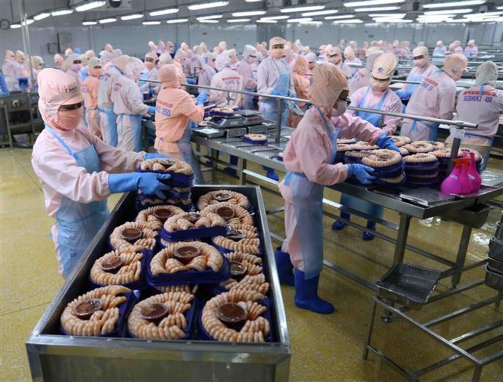 | Transformation de crevettes pour l'exportation à Hâu Giang (Sud). |