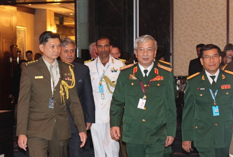 | Le vice-ministre de la Défense, Nguyên Chi Vinh (centre), à la tête de la délégation vietnamienne au Dialogue Shangri-La |