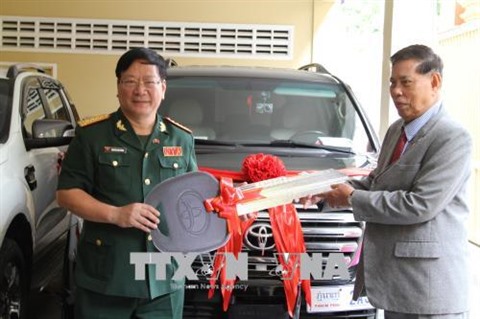 | Le colonel Nguyên Anh Dung remet le 25 mai des cadeaux du gouvernement vietnamien au Font de la solidarité et du développement de la Patrie du Cambodge. |