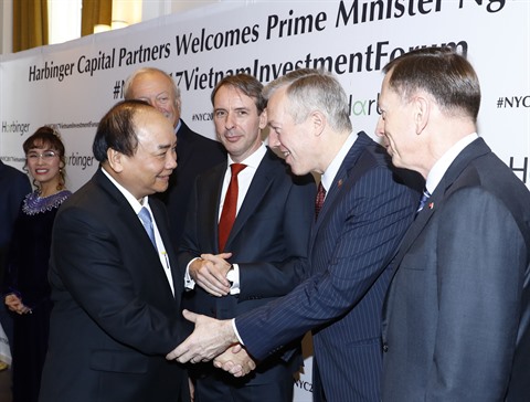 | Le Premier ministre Nguyên Xuân Phuc (gauche) rencontre avec les participants à la table ronde sur l'investissement Vietnam - États-Unis, le 30 mai à New York. |