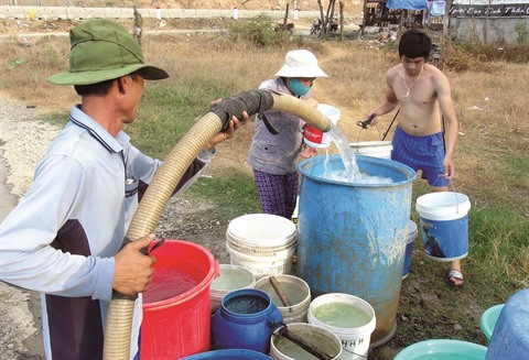 | Lors de la saison sèche 2014-2015, la baisse de la pluviosité a eu pour conséquence une grave pénurie en eau douce dans le delta du Mékong. |