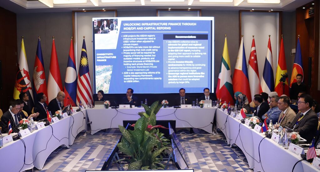 | Les ministres des Finances et les dirigeants des banques centrales des pays de l'ASEAN réunis le 4 avril à Luang Prabang, au Laos. |