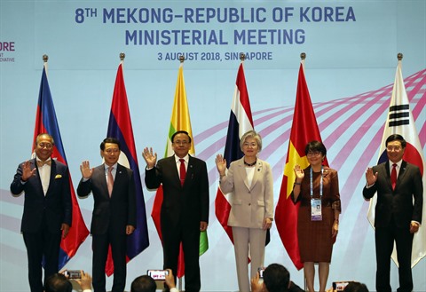 | Le vice-Premier ministre et ministre des AE, Pham Binh Minh (1er à droite) et des ministres des AE participant à la réunion Mékong - République de Corée. |