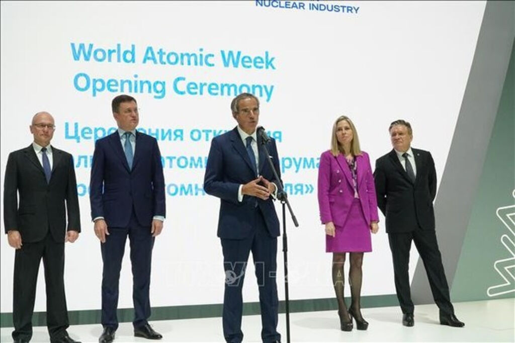 | Le directeur général de l’AIEA, Rafael Grossi, s’exprime en ouverture de la Semaine mondiale de l’énergie atomique. |