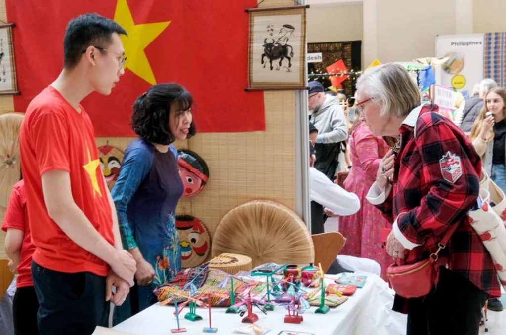 L'épouse de l'ambassadeur du Vietnam au Danemark, Nguyên Thi Thu Hông, et le personnel de l'ambassade du Vietnam ont présenté les images, les produits culturels, artisanaux et touristiques du Vietnam ainsi que sa cuisine auprès des amis internationaux présents à la foire.